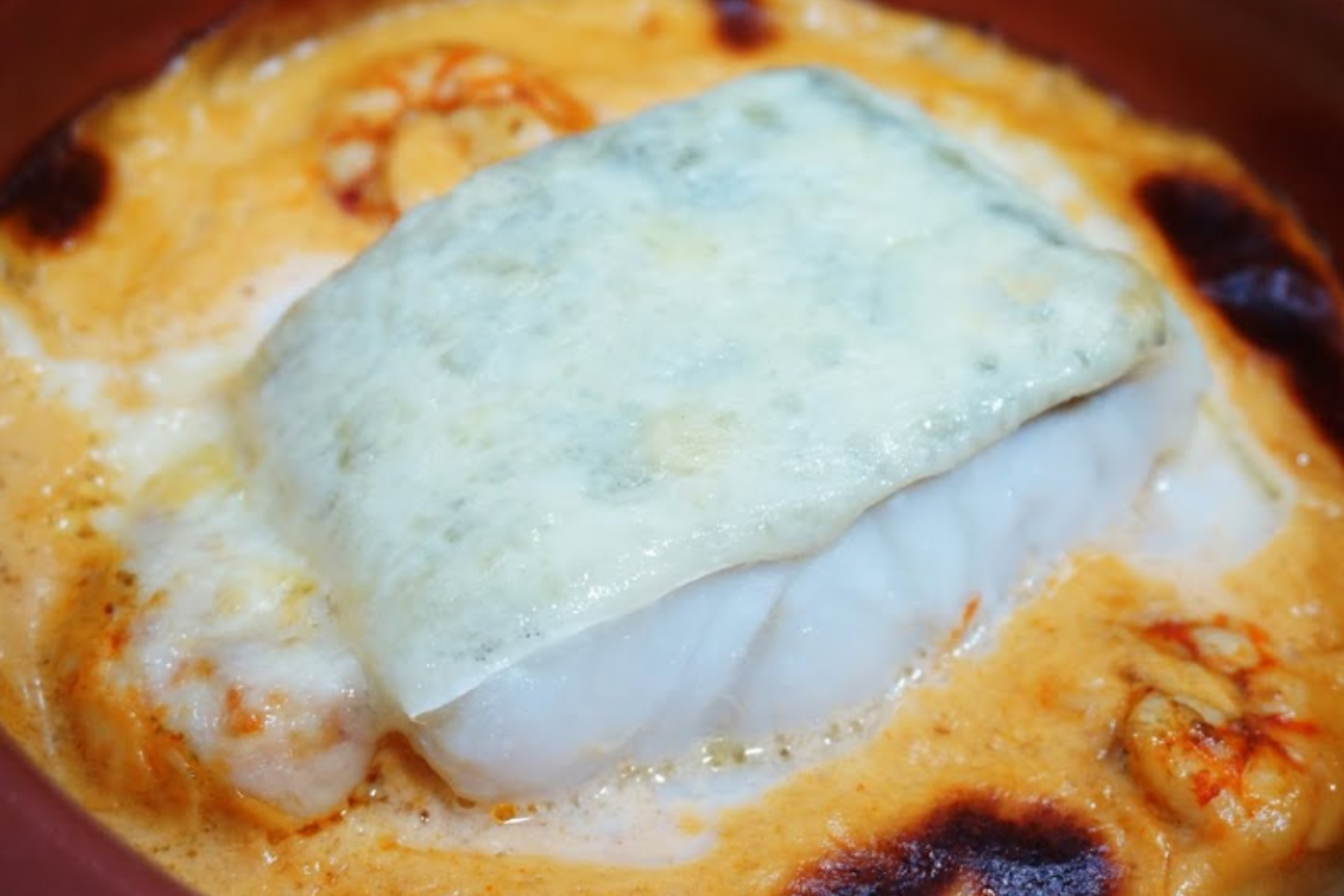 BAKED COD WITH BECHAMEL SAUCE AND PRAWNS