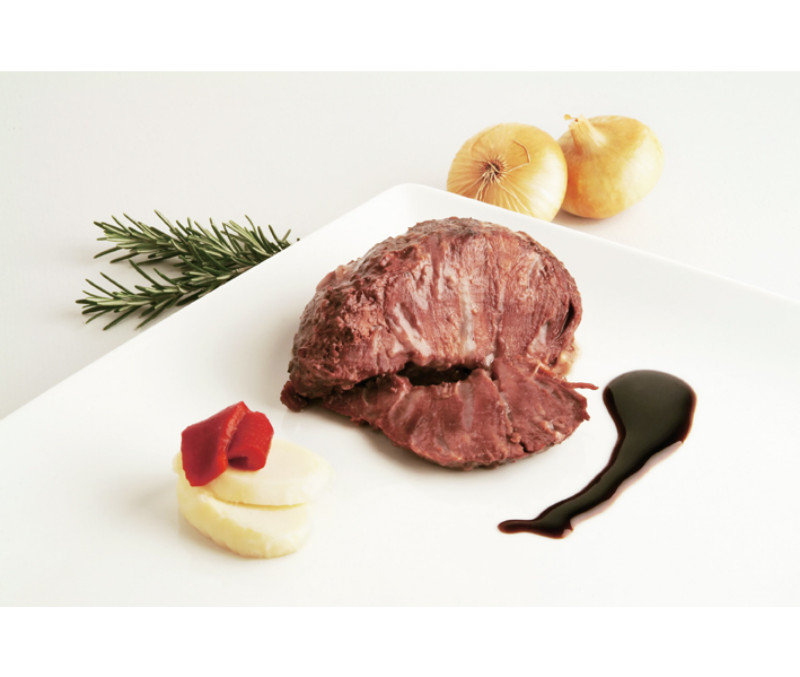 7. Place the pork cheeks on a tray, whole or cut into two pieces and put the sauce.