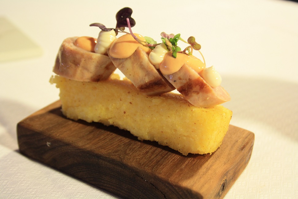 ● Cripollo Oblanca a la parrilla, polenta de queso y mayonesa ahumada
