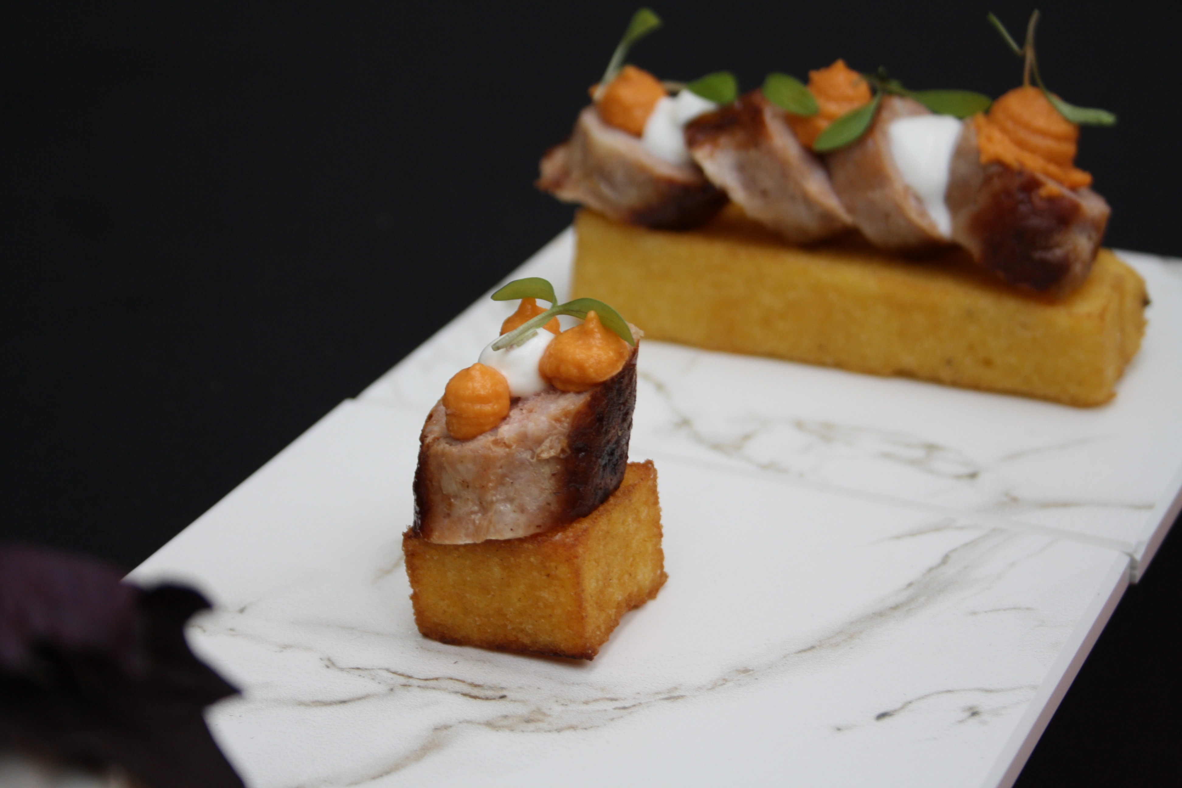 ● Cripollo Oblanca a la parrilla, polenta de queso y mayonesa ahumada