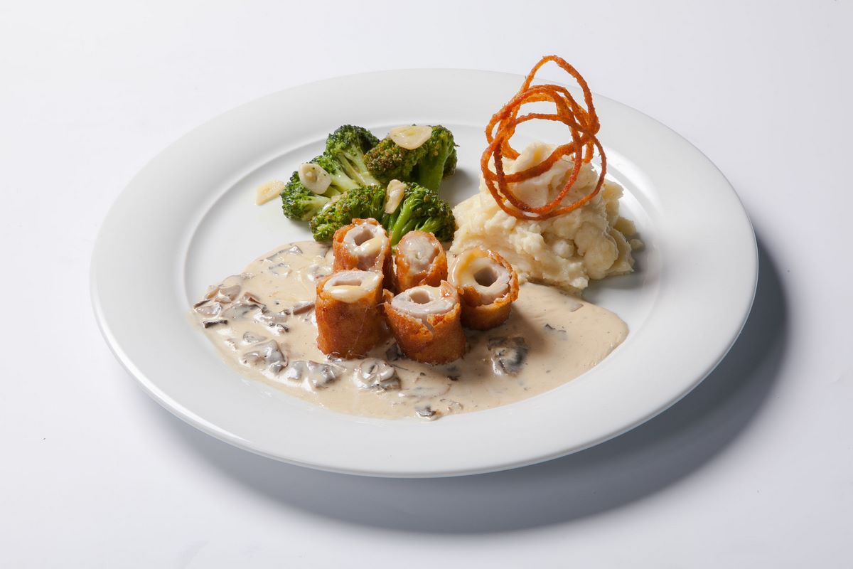 FLAMENQUINES CON SALSA DE CHAMPIÑONES