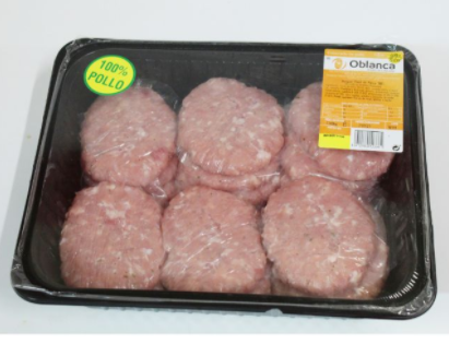 Te ofrecemos burger meat 100% pollo comercializado por Oblanca.